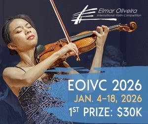 Calling all violinists ages 18-30. EOIVC 2026 is here! With over $175,000 as well as PR & Management support and concert opportunities for our winner, don’t delay! Apply today! The Competition takes place in sunny Florida from Jan. 4-18. Travel stipends and housing are offered to our Preliminary Round Competitors.